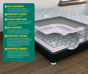 El Colchón Saturno Top de Dormiluna es la combinación ideal de firmeza y confort para un descanso de calidad. Su Tela Banabuy, fabricada en Jacquard, ofrece suavidad y resistencia al desgaste, protegiendo los materiales internos del acolchado y asegurando la durabilidad. El Comfort Cloud aporta un soporte cómodo, mientras que Plush Fiber One garantiza una base sólida y estable a lo largo del tiempo. Con firmeza intermedia, este colchón es perfecto para quienes buscan un equilibrio entre soporte y comodidad.